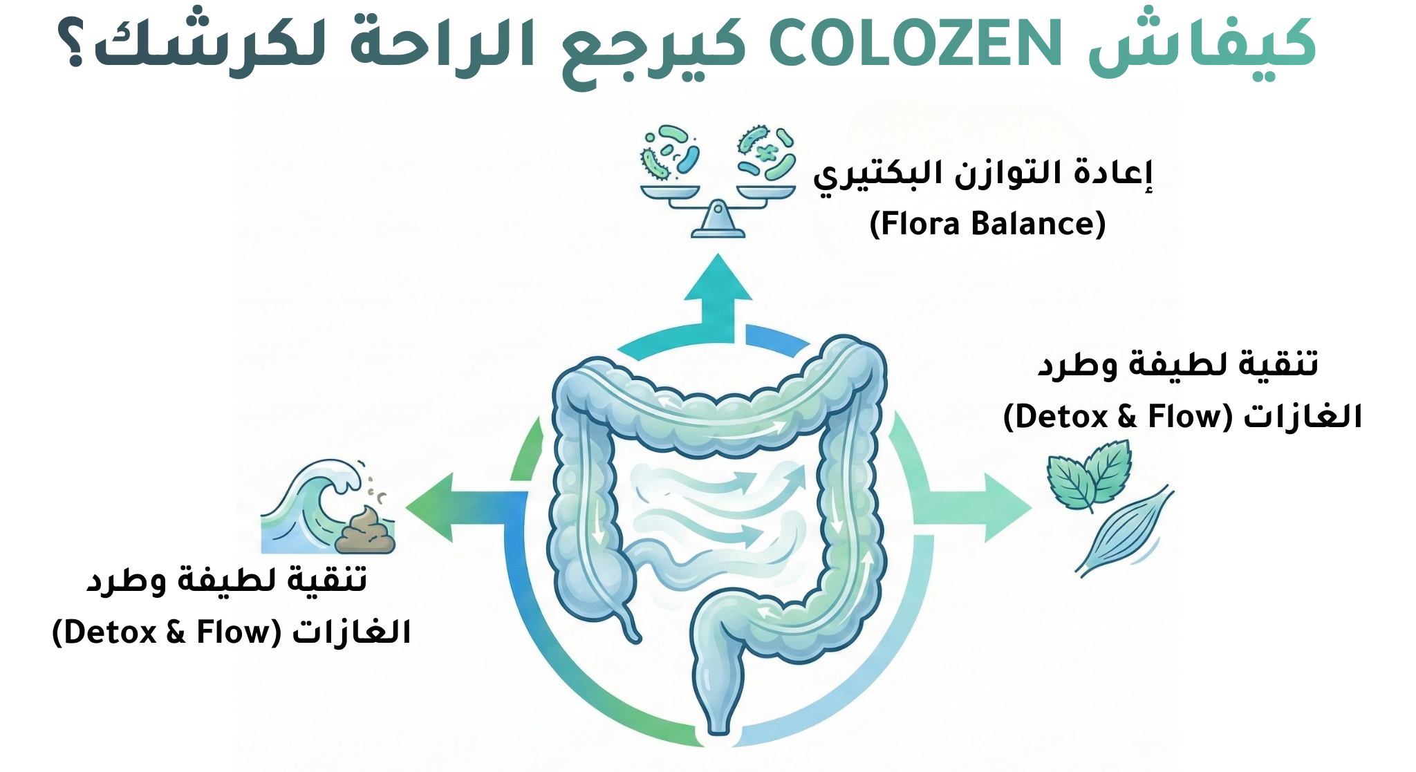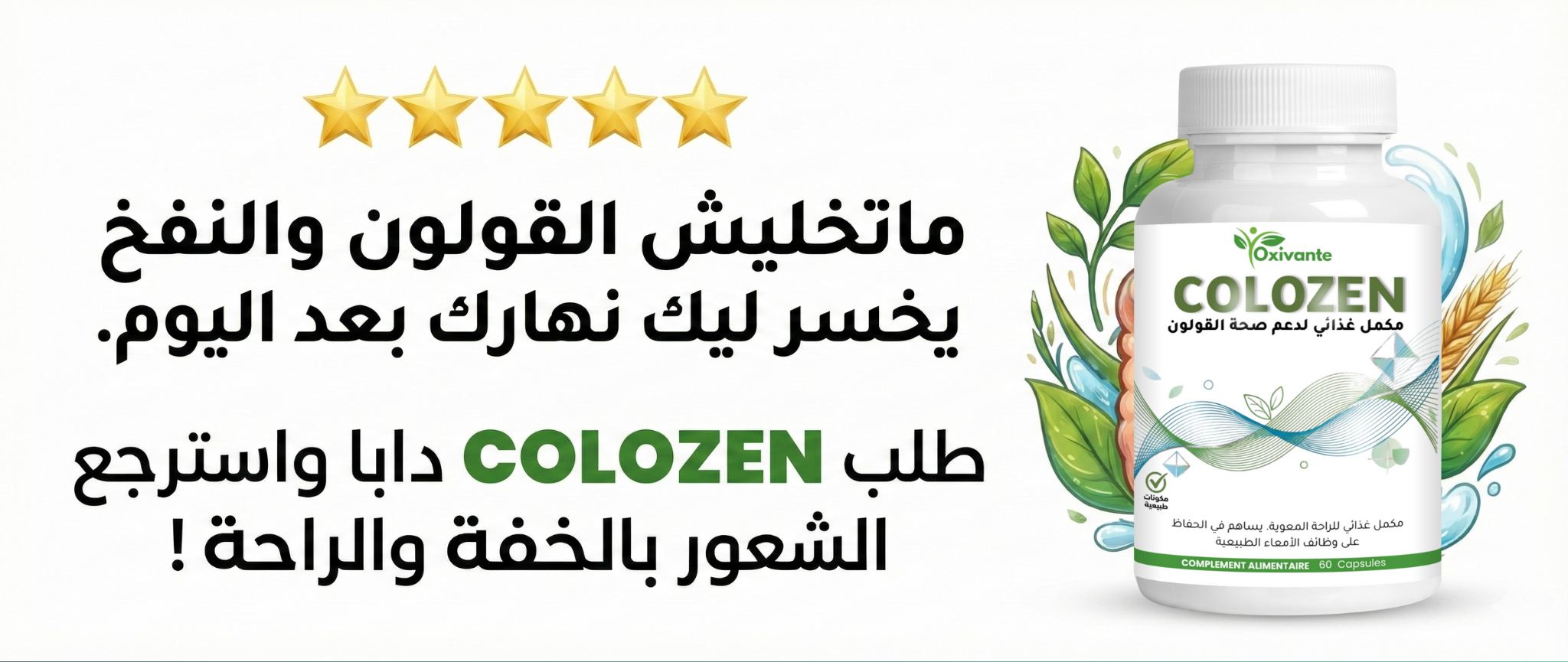كنقدمو ليك COLOZEN، التركيبة الطبيعية المتطورة من مختبرات Oxivante، المصممة خصيصاً باش تهدّن ثورة القولون، تطرد الغازات المتراكمة بلطف، وترجع ليك الراحة والخفة اللي توحشتي.